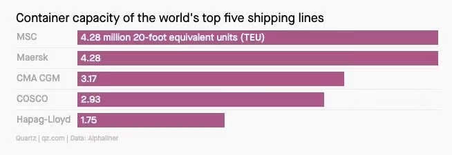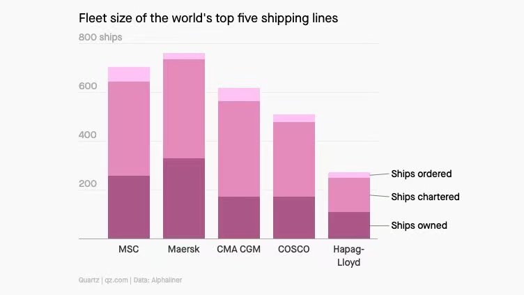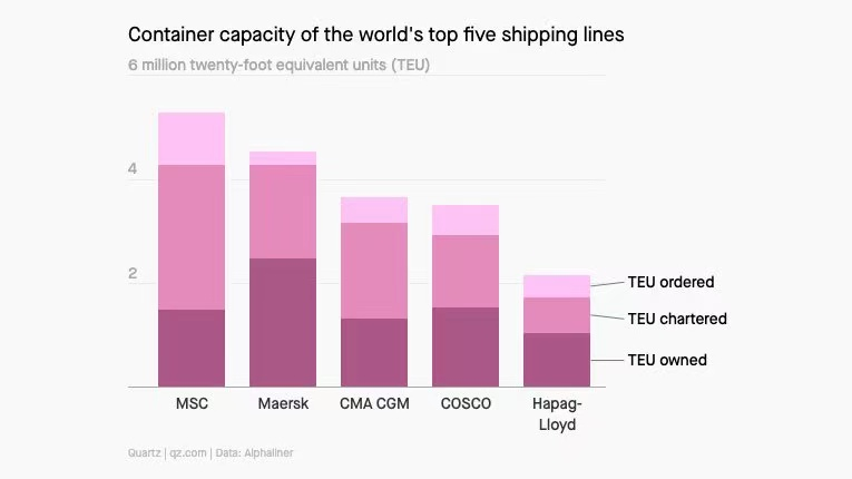 MSC’s dominance isn’t clear-cut. Maersk still owns more shipping capacity than MSC does. MSC makes up the difference by temporarily chartering cargo ships from other lines.
