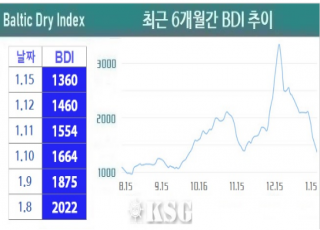 BDI 1360???…中 ??? ?? ?? ??? 1?15? ???? ????(BDI)? ???? 100??? ??? 1360?? ????. ?? ?? ??? ?? ??? ???? ????? ?? ??? ???, ??? ??? ?? ???? ???? ?? ?? ??? ??? ???. ??? ????